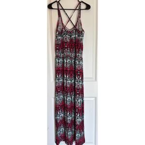 Tart Aztec Tribal Striped Multicolor Modal Maxi Dress Cross Back Pink Black Teal