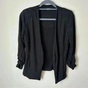 Tart Black Open Knit Cardigan Meshed Ruched 3/4 Sleeve Black Size X-Small