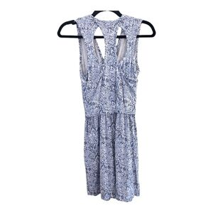 Get the look of fashion-forward high-end designer with this tart blue & black modal & spandex snake print crossover racerback mini dress.