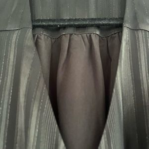 This is a lovely Midi Dress that is a wrap around v neck. The tags are still on, my daughter never wore it. The outside is a black sheer and shining polyester and there is a black inner lining.
