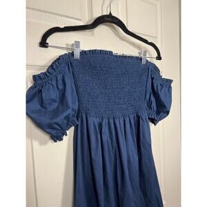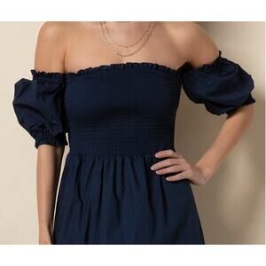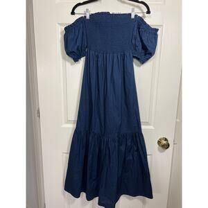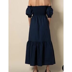Tart Collection Kourt Blue Off Shoulder Maxi Dress Vacation Easy Puff Sleeve