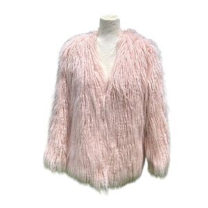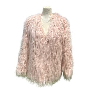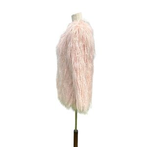 Tart Collections Shaggy Retro Pink Faux Fur Coat. Size XS. Light pink. 70% modacryclic and 30% acrylic. Lining 97% polyester and 3% spandex. New with tag. No noted flaws.