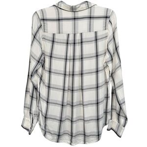 Tart Plaid Button Down Shirt M Gray White Hi-Low Blouse