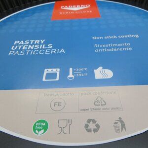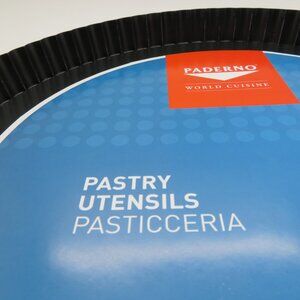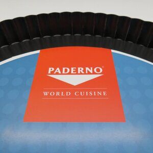Paderno World Cuisine 12 inch Nonstick Round Baking Tin Pan with Fluted Sides and Removable Bottom. The fluted sides will give tarts a beautiful decorative edge. Easily push up the flat bottom to remove the dessert from the pan. Non-stick coated steel is PFOA free and can be heated up to 392 degree Fahrenheit. Excellent for baking your favorite tart and quiche. Happy baking.