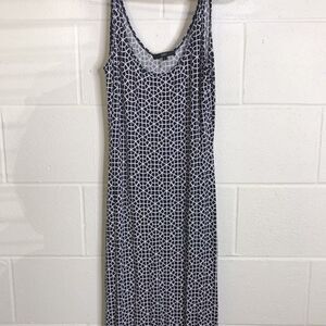 Tart Womens Long Maxi Dress Navy White Geometric Thin Straps Scoop Neck Small