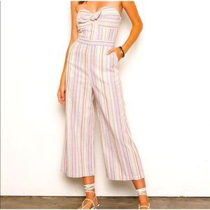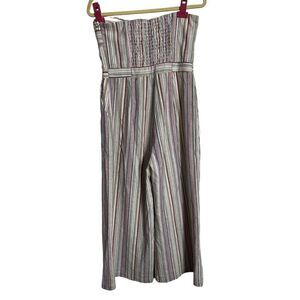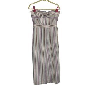Tart Jumpsuit Womens M Striped Strapless Sweetheart Christy Linen Blend Wide-Leg
