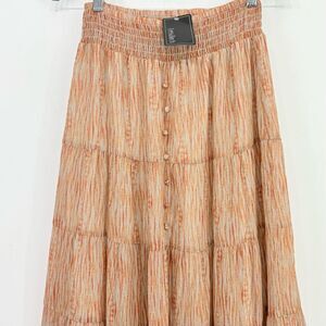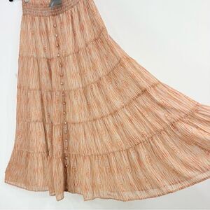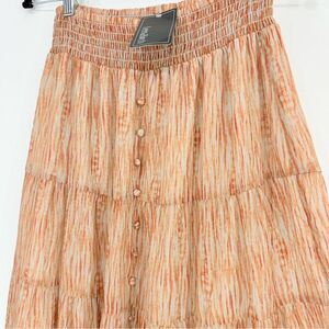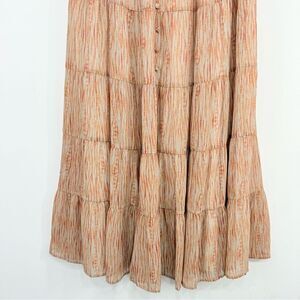 Tart Lee & Birch Orange Cream Abstract Print Tiered Flowy Full Maxi Skirt NEW