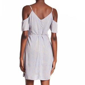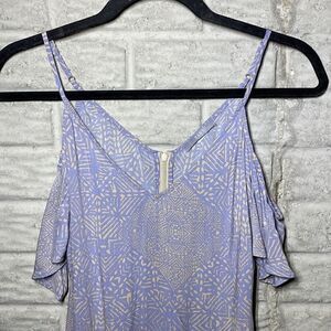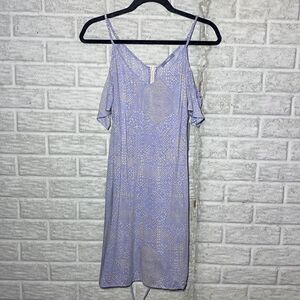 A patterned woven dress pairs perfectly with sandals to complete your look. V-neck - Cold shoulder short sleeves - Hidden back zip closure - Removable tie from waist - Woven construction - Imported
