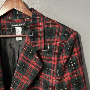 Tartan Plaid Blazer Womens Size 12 Wool Classic Preppy One Button Red Black