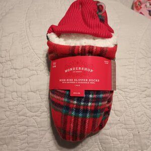 Tartan Plaid Faux Shearling Lined Slipper Socks with Huggable Heel & Grippers