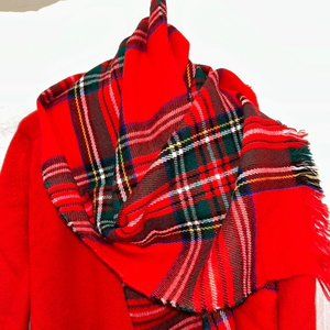 Add a touch of elegance to your outfit with this vibrant plaid scarf. Featuring a striking combination of red and green, it's perfect for any occasion.