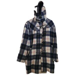 Tartaneer by Gloverall Men's Duffle Coat Sz 42 Black Tan Red Plaid Wool Vintage