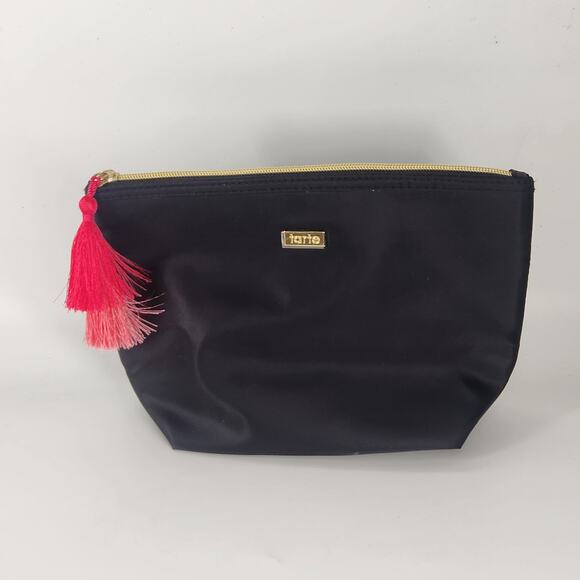 Tarte Black Cosmetic Makeup Bag Pouch W/ Pink Tassel Gold Plated Small Clutch