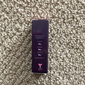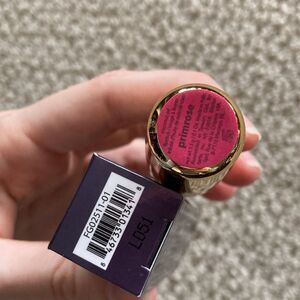 Brand new in the box (but SWATCHED once; I sanitized this item prior to listing it) Coconut Oil Lipstick in the shade primrose, a cool red color. Absolutely gorgeous color.