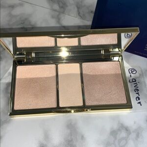 A highlighting trio palette with three universal shades for strobing and perfecting.