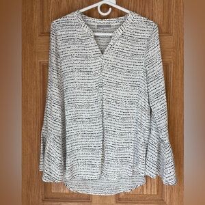 Tarte blouse V-neck bell sleeves black abstract print women’s M