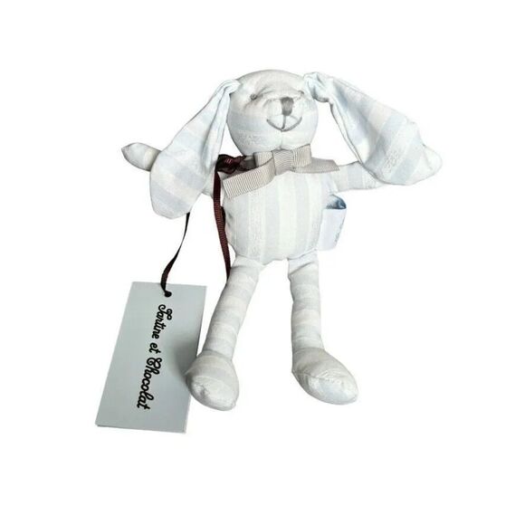 Tartine Et Chocolat striped bunny rabbit plush toy NWT Blue & White