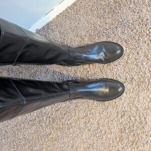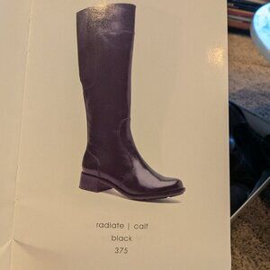 Elevate your fall and winter wardrobe with these stunning Radiate riding-style boots in black. Crafted smooth calf leather, these boots offer both style and comfort. The sleek silhouette features: