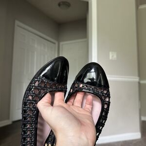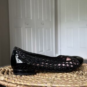 Taryn Rose Beatriz Black Woven Black Patent Leather Ballet Flat Womens US 8.5