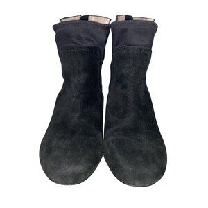 Taryn Rose Black Suede Ankle Boots With Back Zippers & Block Heels Size 9