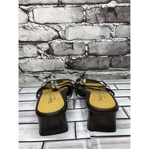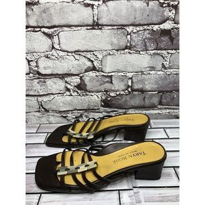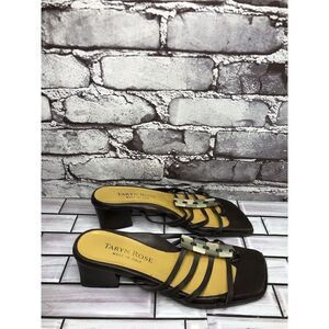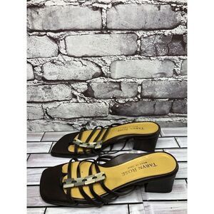 Taryn Rose Brown Leather Stone Slides Strap Heel Sandals Women Sz 38EU/7.5M US