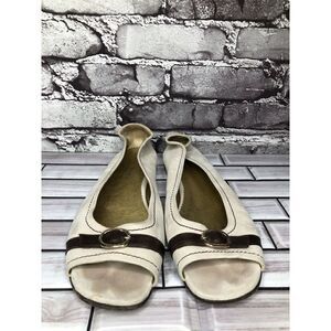 Taryn Rose Ivory Leather Brown Leather Strap Pumps Peep Toe Shoes Women sz 39EU