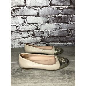Taryn Rose Nude Pink Leather Gold Cap Toe Ballet Flats Women Sz 8M US/38.5EU