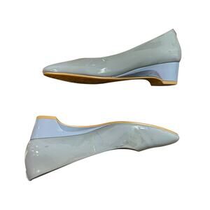 Taryn Rose Women’s Babs gray/blue patent leather kitten wedge heels, Size 7.5