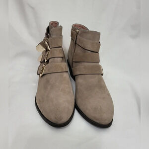 Taryn Rose Women's Samantha Taupe Zipper & Buckle Ankle Booties, Size 8M