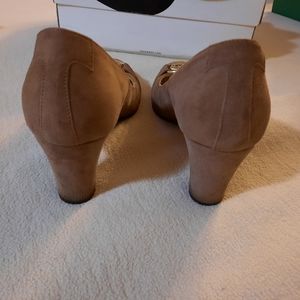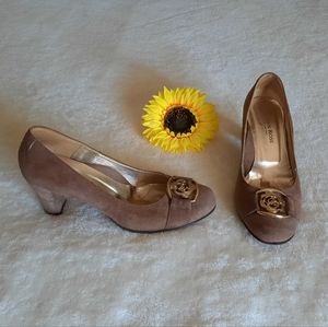 Taryn Rose brown suede, round toe, medium block heel pumps. in fabulous condition. size 5.5 .. see photos for details. thanks! :)