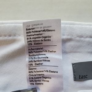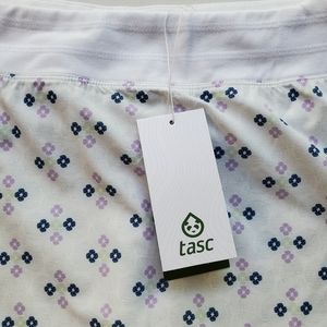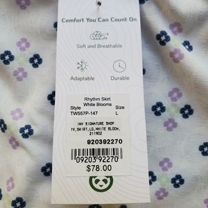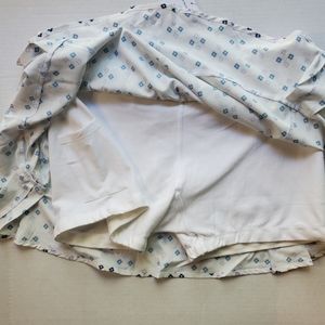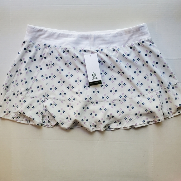 Tasc Active Skirt/Short Combo. 1 Pocket. White with floral pattern. Size L. measurements taken layed FLAT. waist - 17 inches, length - 13 inches. New with Tags