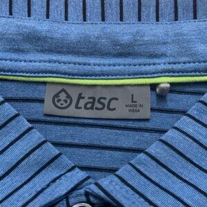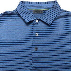 Tasc Polo Shirt Mens Size L Short Sleeve Performance Golf Stretch Blue Striped