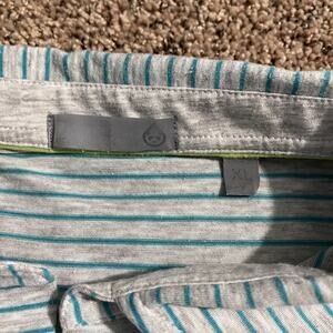 Tasc Polo Shirt Mens XL Gray Blue Striped Performance Golf Athletic Lightweight