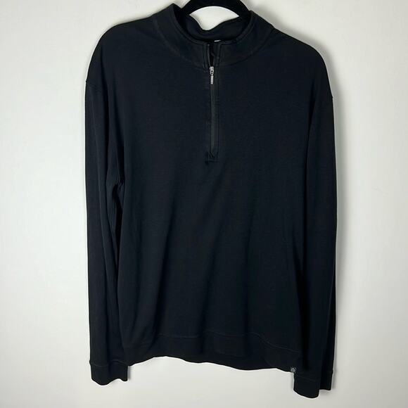 Gently Used Tasc Pimaluxe Quarter Zip Pullover Sweater. This is a men's XL. Black throughout. Tasc logo tag around the waist. 55% pima cotton, 45% viscose from bamboo. Breathable and comfortable sweater!
