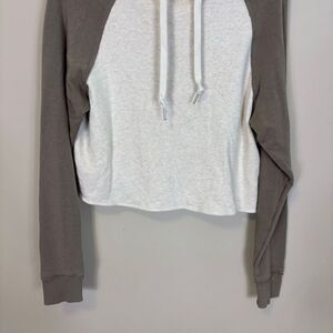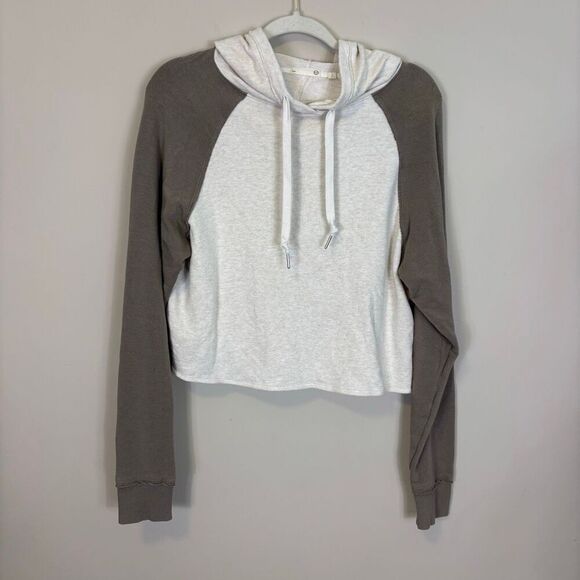Tasc White with Light Brown Sleeves Hooded Pullover Sweatshirt Size Medium