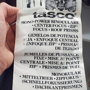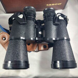 2008 Tasco Zip Binoculars 10x50 Fully Coated with Leather Carrying Case and Bonus Vintage Olympus Camera Strap