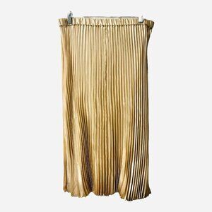 Tash and Sophie Satin Pleated Champagne Midi Skirt Size XL Pull-On Lined NWT