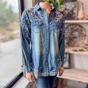 Tasha Polizzi Collection, Embroidered Denim Revolution Shirt, Women's Medium