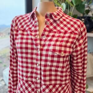 Tasha Polizzi Collection Red and White Gingham Pearl Snap Western Shirt, Medium
