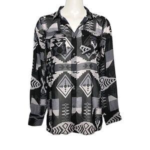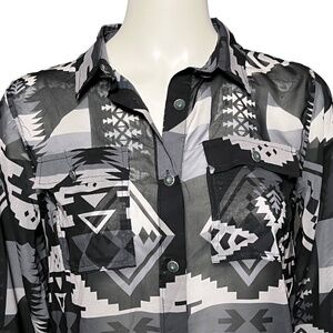 Tasha Polizzi McKenzie Aztec Button Down Shirt Small Black Sheer Western Cowboy