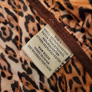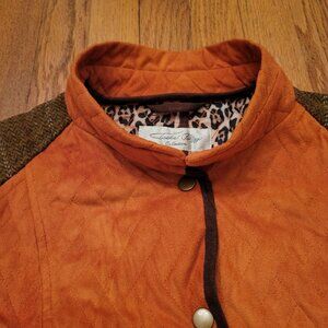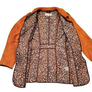 Tasha Polizzi Orange Quilted Coat L Leopard Print Lining Brown Tweed Trim Patche