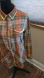 Chic plaid button-down shirt. Features orange and olive green tones. Pearl snaps, Roll up sleebe snap & muted gold sequin trim ! Ideal for casual wear.