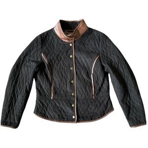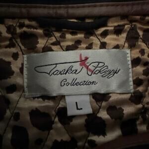 Tasha Polizzi Quilted Black Trimmed Fitted Jacket Animal Print Lined Size Large