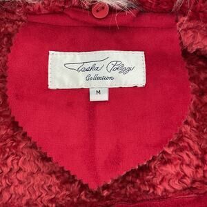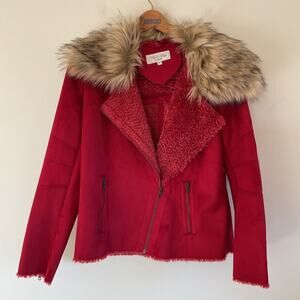 Tasha Polizzi Red Faux Suede Moto Biker Jacket Sz M Detachable Faux Fur Collar Asymmetrical Zip Cowgirl