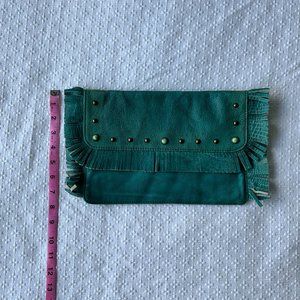 Tasha Polizzi Teal Fringe Clutch