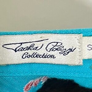 Tasha Polizzi Turquoise Long Sleeve Embroidered Linen Top Size Small