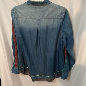 Tasha Polizzi Womens Cotton Denim Shirt with Multicolor Embroidery Size Large
