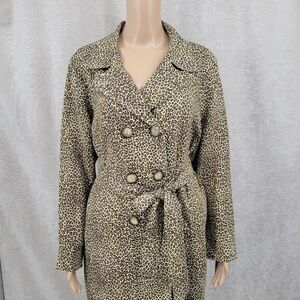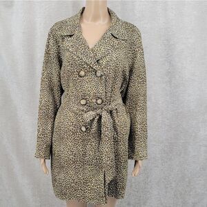Tasha Polizzi Trench Coat Vintage Linen Leopard Print Double Breasted