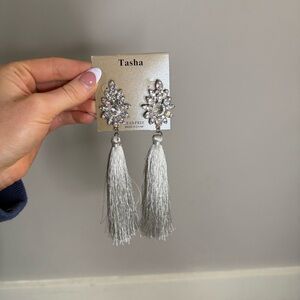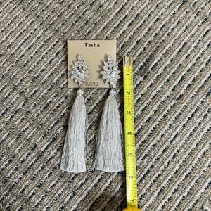 Tasha Silver Grey Tassel Earrings with Rhinestones