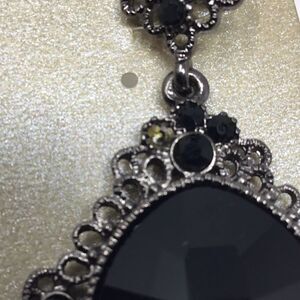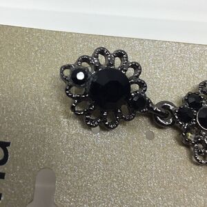 Milgrain filigree decorates the edges of glamorous drop earrings illuminated with a romantic mix of sparkling jet black crystals.